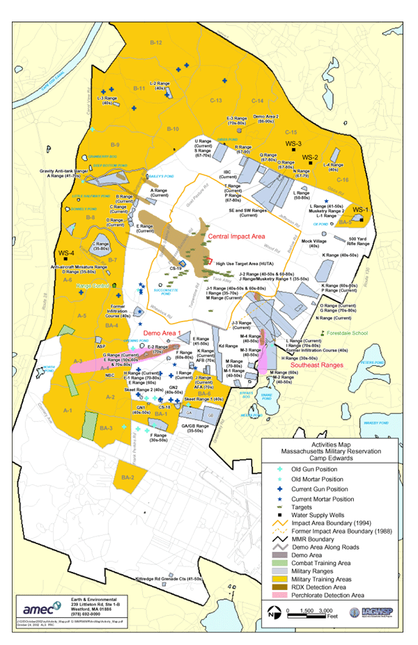The training location where artillery and mortar targets were placed and fired at (Camp Edwards has a 5,000 acre impact area)