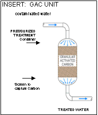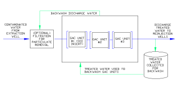 The granular activated carbon systems proposed for use at Camp Edwards would be designed to have contaminated groundwater, extracted from the aquifer, flow through a series of containers or a "treatment train." The treatment train would include containers filled with standard granular activated carbon to remove explosives and some perchlorate, along with containers filled with "tailored" granular activated carbon specifically designed to remove perchlorate. It also could include a final granular activated carbon vessel to ensure that all contaminants would be captured.